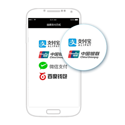 楚龙支付,为iOS/Android原生/H5 App提供支付解决方案:支持微信支付、支付宝支付、银联手机支付、百度钱包等。
